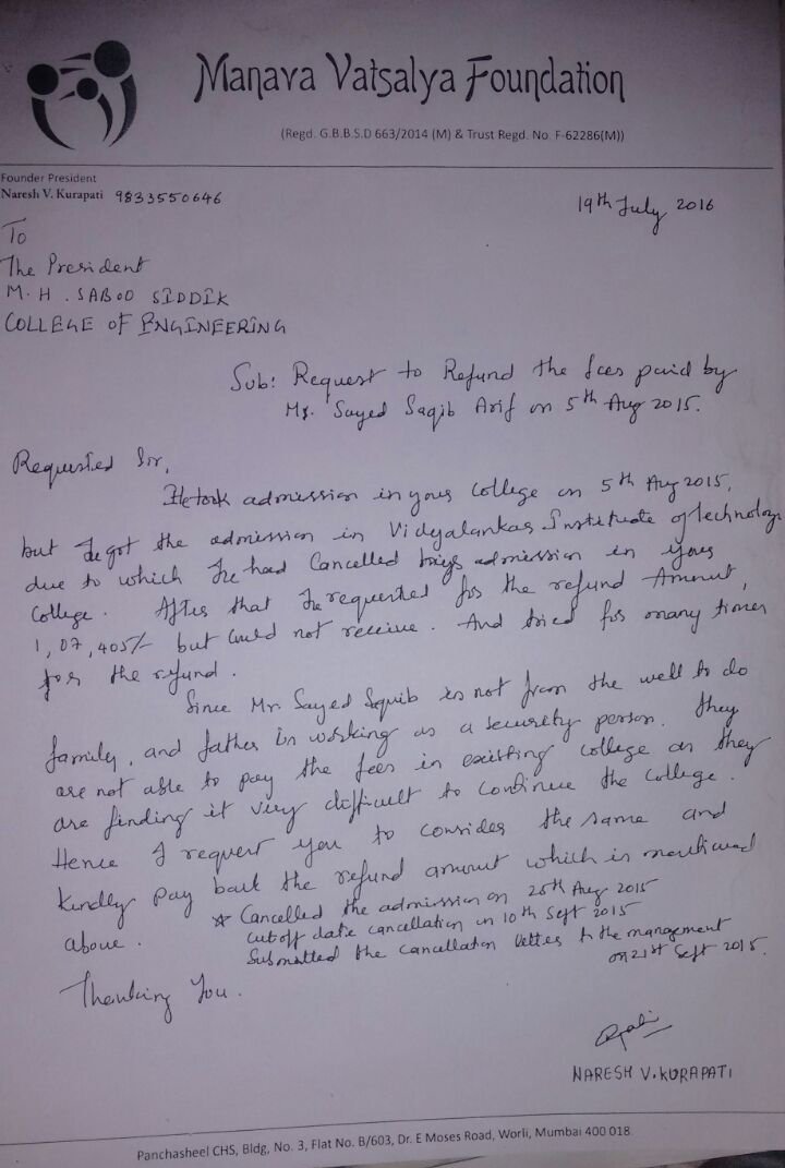 WE HELP THE STUDENT TO GET REFUND HIS FEES ON 25.11.2016